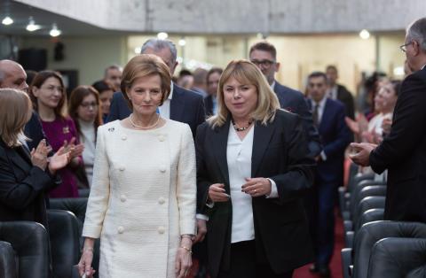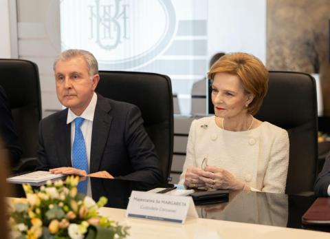 The Governor of the National Bank of Moldova, Anca Dragu, together with the institution's team, received Her Majesty Margareta, Custodian of the Romanian Crown, and His Royal Highness Prince Radu today on an official visit.