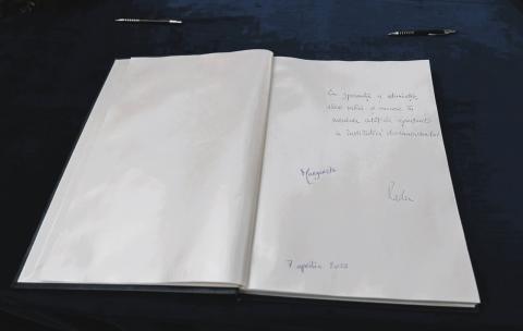 Also, during this visit, the National Bank of Moldova inaugurated its first Book of Honor, in which Her Majesty Margareta, Custodian of the Romanian Crown, and His Royal Highness Prince Radu wrote the following message: With hope and admiration, best wishes and success in the very important mission of your institution!"