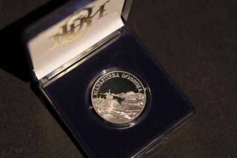 on the upper part , following the coin circumference- the inscription "MĂNĂSTIREA DOBRUŞA " is engraved in block letters.