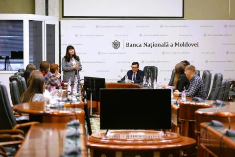 The event ended with a unique action, in which 9 of the most studious Master’s students and students from the Academy of Economic Studies of Moldova, Technical University of Moldova, State University of Moldova, Centre of Excellence in Economics and Finance and Iulia Hasdeu College from Cahul spent one day at the National Bank of Moldova. The 9 competition winners visited our bank, engaged in discussions with the Governor and other members of the NBM team, and gained a close understanding of the institution’s areas of activity.