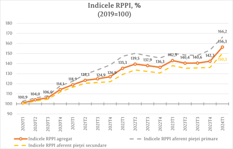 As of the end of the 1st quarter of 2024, the offer price for residential property in Chișinău has recorded a rapid growth compared to the previous quarter. As of the end of the reporting period, the RPPI has registered the value of 156.3 percent, which is a 9.8 percent increase compared to the 4th quarter of 2023, and 9.4 percent higher compared to the 1st quarter of 2023.