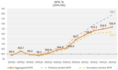 The RPPI associated to the new dwellings, listed on the primary market, has registered the value of 138.7 percent, that being an increase of 17.7 percent compared to the 4th quarter of 2020.