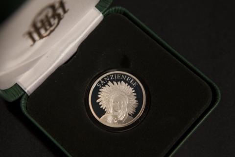 on the upper part – following the coin circumference– the inscription - „SÂNZIENELE" is engraved in block letters.