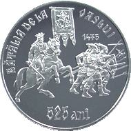 Monedă comemorativă „525 ani de la glorioasa victorie a lui Ştefan cel Mare în bătălia de la Vaslui”, în circulaţie din 29 noiembrie 2000.