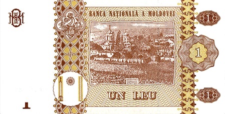 Reversul bancnotei: În interiorul unei rame imaginea grafică a Mănăstirii Căpriana cu textul sub ea „MĂNĂSTIREA CĂPRIANA”, valoarea nominală în cifre şi în litere, două elemente verticale decorative , Stema lui Ştefan cel Mare, imaginea stilizată a Columnei lui Traian, Coloana Infinitului, iar între ele semiluna, textul „BANCA NAŢIONALĂ A MOLDOVEI” și sigla BNM. |