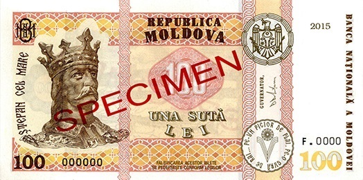 Bancnota modernizată cu valoarea nominală de 100 LEI, specimenul anului 2015, are designul identic bancnotei cu valoarea nominală de 100 LEI, specimenul anului 2013, dimensiunile fiind modificate.