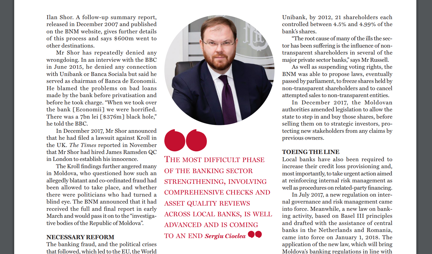 Interviul acordat de dl guvernator Sergiu Cioclea celebrei publicații britanice The Banker, aprilie 2018.