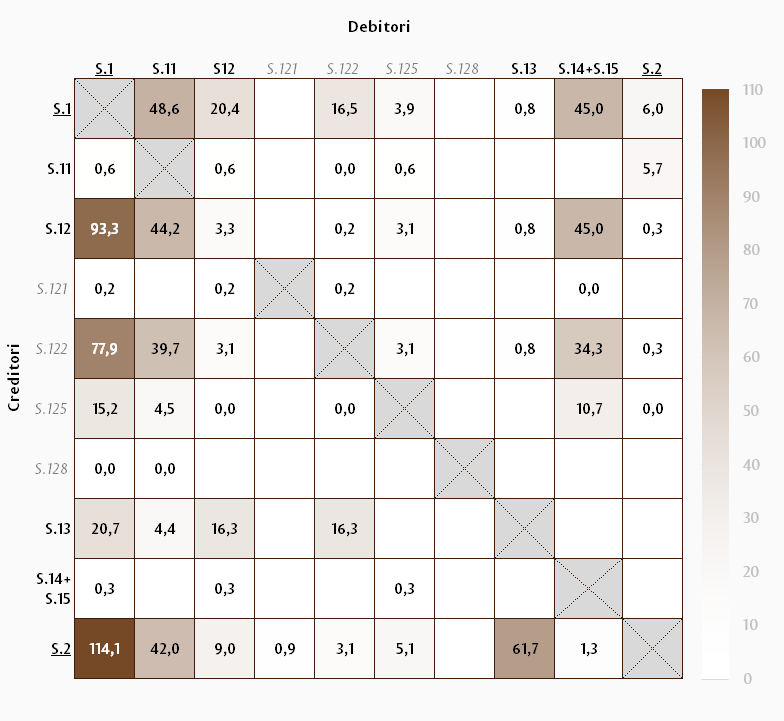 Notă: S.1 - Economia națională, S.11 - Societăți comerciale nefinanciare; S.121 - Banca centrală; S.122 - Alte instituții financiare monetare; S.125 - Alți intermediari financiari; S.128 - Societăți de asigurare; S.13 - Administrația publică; S.14+S15 - Gospodăriile populației și instituțiile fără scop lucrativ în serviciul gospodăriilor populației; S.2 - Restul lumii
