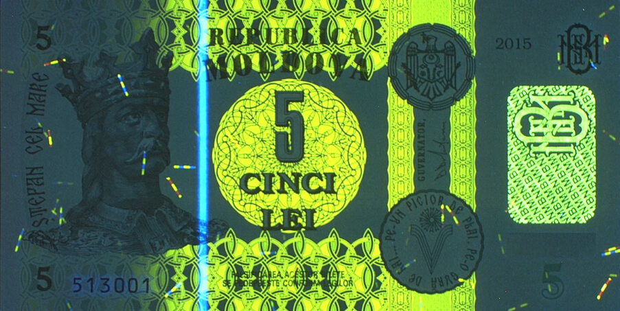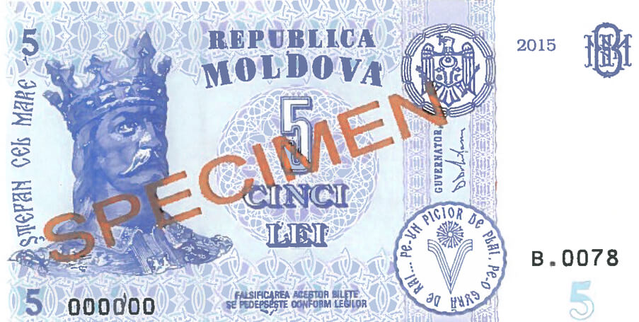 Începând cu data de 11 decembrie 2017, Banca Națională a Moldovei pune în circulație pe teritoriul Republicii Moldova bancnota modernizată cu valoarea nominală de 5 lei. Aceasta va fi acceptată ca mijloc de plată fără restricții. Bancnotele emise anterior, cu valoarea nominală respectivă se vor afla în circulație în paralel cu bancnotele renovate și vor fi retrase treptat ca rezultat al uzării și deteriorării, necorespunzătoare circulației.