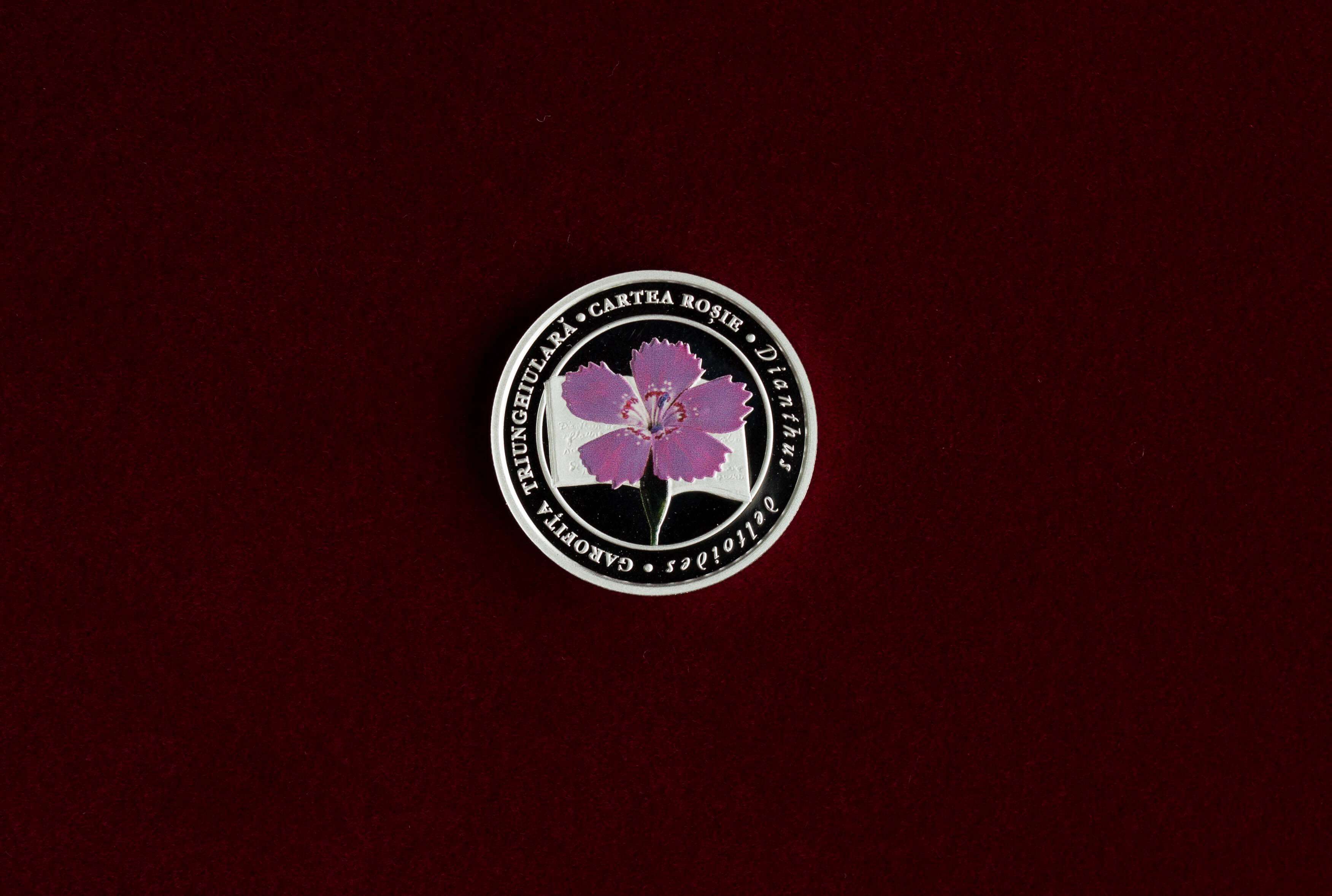 Pentru prima oară în colecția monedelor comemorative și jubiliare apare o lucrare executată în culori. Moneda din argint „Garofița-triunghiulară”, specie de plantă erbacee, va completa seria „Cartea Roșie a Republicii Moldova”.