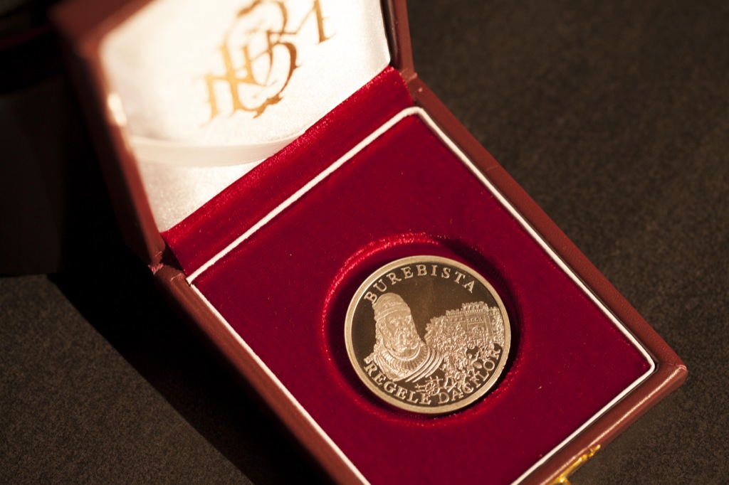 Monedă comemorativă "Burebista – regele dacilor", în circulaţie din 29 august 2005.