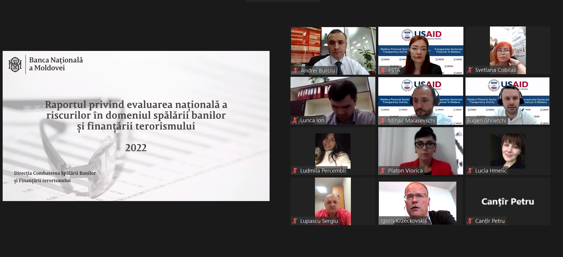 Diminuarea riscurilor de spălare a banilor continuă să reprezinte o preocupare majoră atât pentru Banca Națională a Moldovei (BNM), cât și pentru entitățile raportoare. Cele două sesiuni de informare, dedicate rezultatelor ultimei evaluări naționale în domeniu, au adunat aproape 200 de reprezentanți ai sectoarelor supravegheate, care au fost interesați de măsurile de reducere a vulnerabilităților identificate. Sesiunile au fost organizate cu suportul Proiectului USAID „Transparența Sectorului Financiar în Moldova” (FSTA) și au fost moderate de către experți naționali și internaționali în domeniul prevenirii și combaterii spălării banilor și finanțării terorismului (AML/CFT).