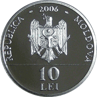 • urmînd circumferinţa monedei - cu majuscule este gravată inscripţia "REPUBLICA MOLDOVA".