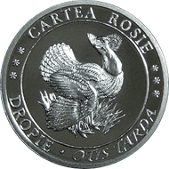 • urmînd circumferinţa monedei - cu majuscule sînt gravate inscripţiiile "CARTEA ROŞIE”, “DROPIE”, “OTIS TARDA".