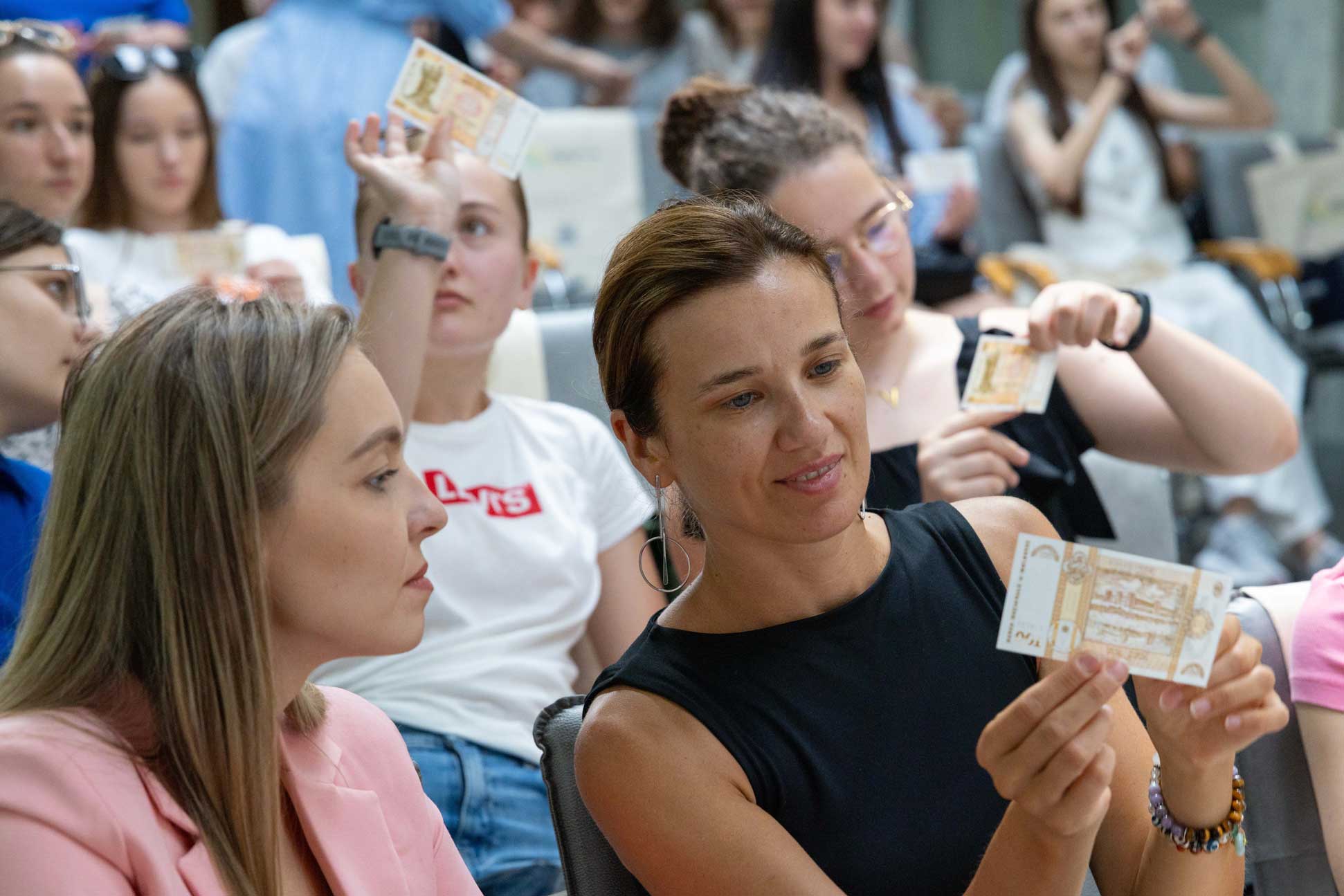 Vizita a continuat cu un tur ghidat în sala de expoziții, unde tinerii au descoperit istoria leului moldovenesc, colecția de monede comemorative și jubiliare emise de BNM, dar și de alte bănci centrale. În cadrul atelierului educațional, desfășurat cu sprijinul reprezentanților Direcției Operațiuni cu Numerar și ai Direcției Fintech din cadrul BNM, participanții au discutat despre modul în care tehnologiile moderne impulsionează serviciile financiare, despre avantajele sistemului MIA – Plăți Instant, creat de Banca Națională, precum și despre elementele de siguranță ale monedei naționale – leul moldovenesc.