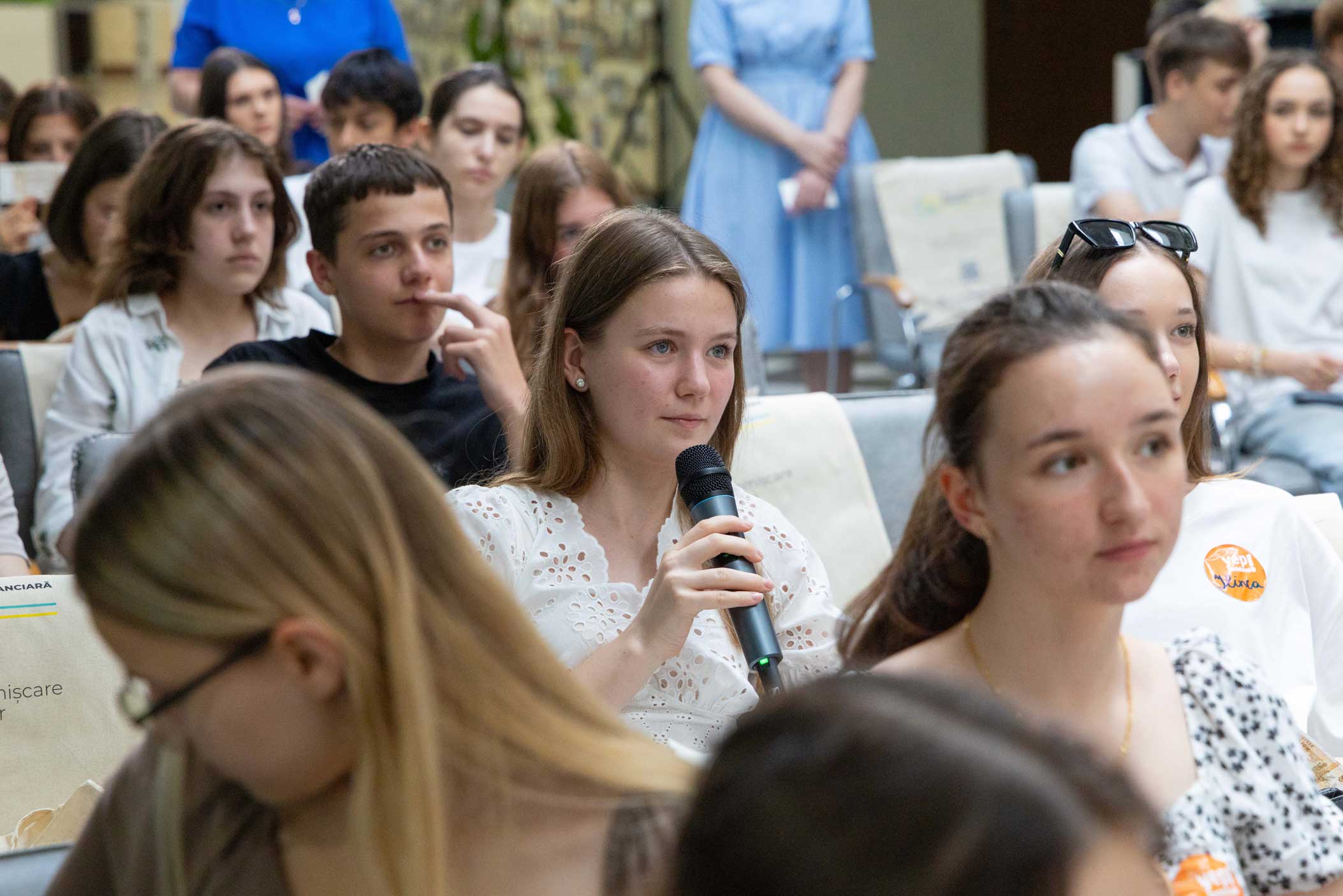 Sesiunea de întrebări și răspunsuri cu guvernatoarea BNM a fost un moment interactiv apreciat de participanți, care au adresat întrebări despre investiții, economisire, accesarea creditelor și alte noțiuni financiare. Prin răspunsuri clare și încurajatoare, doamna Anca Dragu i-a motivat pe tineri să fie curioși, informați și implicați în propriul lor parcurs financiar.