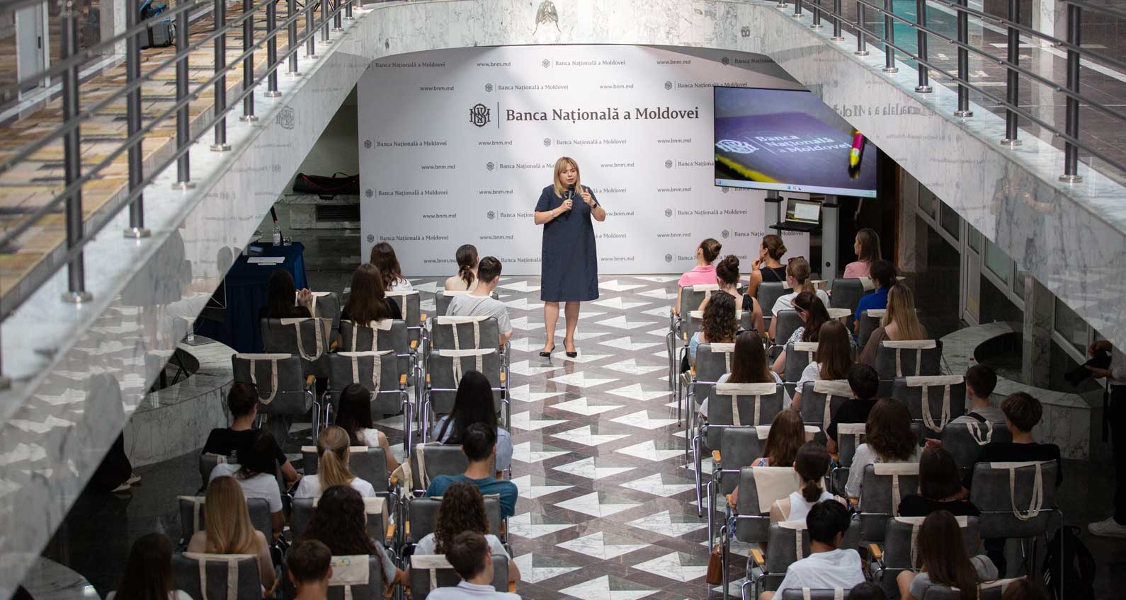 Peste 50 de tineri au vizitat pe 8 iulie, 2025 Banca Națională a Moldovei pentru a înțelege mai bine rolul băncii centrale și importanța educației financiare. De la plăți inovative care ne pot face viața mai comodă, la decizii financiare care influențează stabilitatea unei familii, participanții au explorat concepte-cheie cu impact direct asupra vieții cotidiene și a evoluțiilor economice actuale.