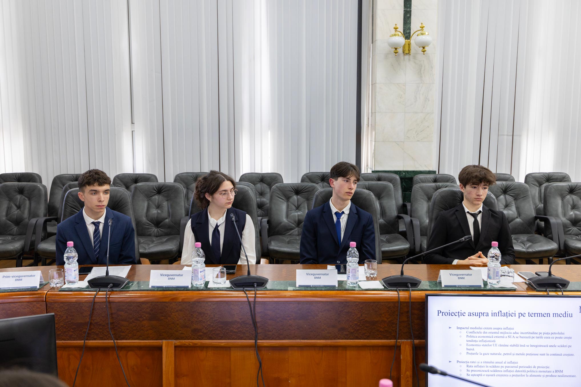 Atelierul le-a oferit liceenilor oportunitatea de a înțelege modul în care sunt analizate evoluțiile economice și cum sunt adoptate deciziile de politică monetară într-o bancă centrală. În cadrul exercițiului, elevii au intrat în rolul membrilor Comitetului executiv al BNM, examinând, alături de guvernatoarea Anca Dragu, indicatori macroeconomici și date din Raportul asupra inflației al Băncii Naționale.