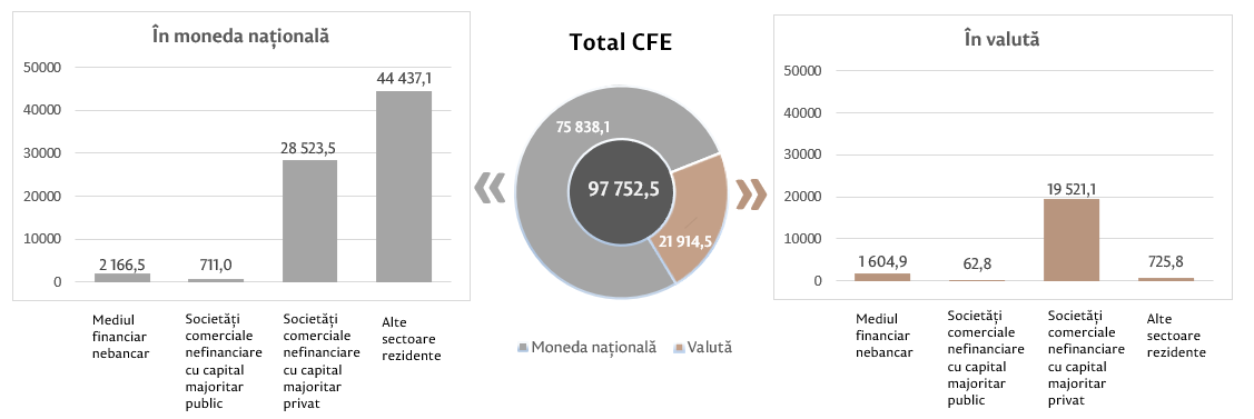De menționat că soldul cererilor față de economie în valută, exprimate în EUR9, a constituit în luna august 1 128,6 milioane EUR, micșorându-se cu 2,4 milioane EUR (-0,2 la sută) comparativ cu luna iulie 2025.