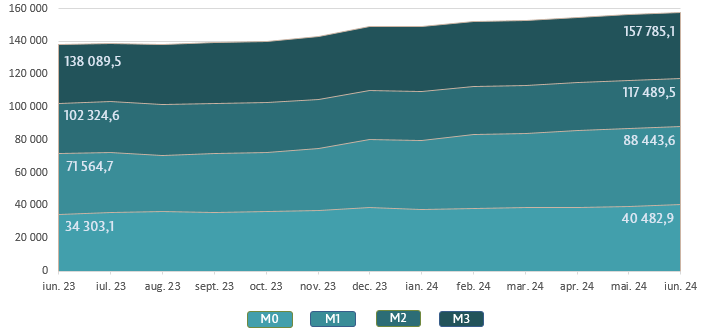Diagrama 1. Evoluția masei monetare în luna iunie 2024 comparativ cu luna precedentă, miliarde lei3