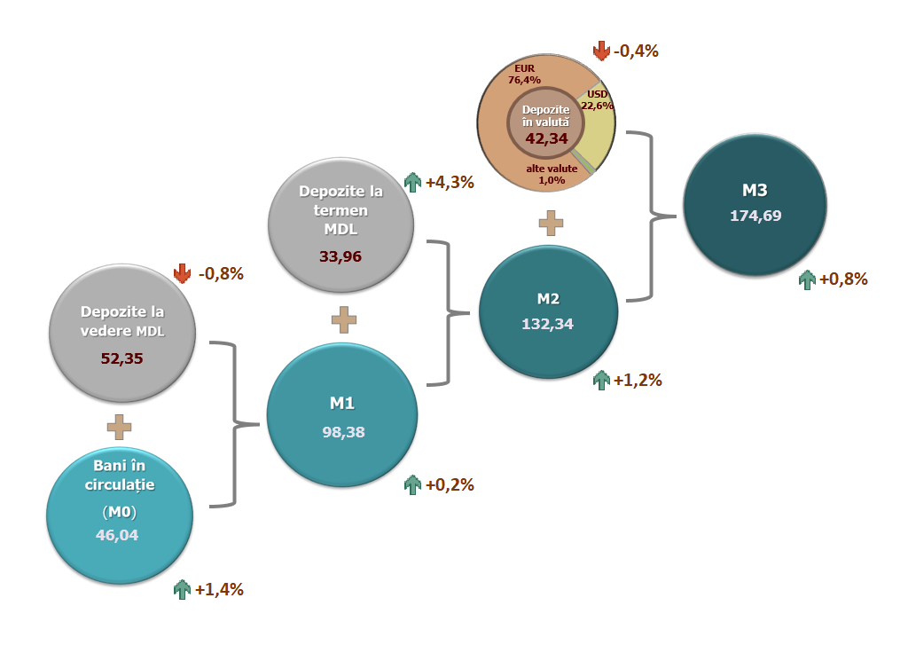 4. Masa monetară M1 include banii în circulație (M0) și depozitele la vedere în lei moldovenești ale rezidenților.