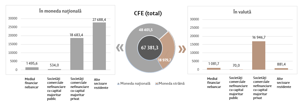 8. Conform metodologiei FMI, din totalul cererilor față de economie (inclusiv datele băncilor aflate în proces de lichidare) sunt excluse creditele nerezidenților, interbancare și creditele acordate Guvernului Republicii Moldova.