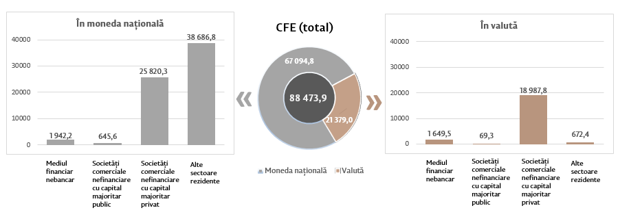 8. Conform metodologiei FMI, din totalul cererilor față de economie (inclusiv datele băncilor aflate în proces de lichidare) sunt excluse creditele nerezidenților, cele interbancare și creditele acordate Guvernului Republicii Moldova.