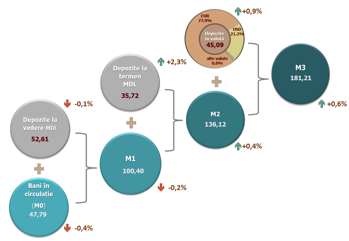 2. Banii în circulație M0 reprezintă numerarul emis în circulație de Banca Națională a Moldovei, cu excepția celui aflat în casele băncilor licențiate și în casa Băncii Naționale a Moldovei.