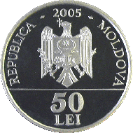 • urmînd circumferinţa monedei - cu majuscule este gravată inscripţia "REPUBLICA MOLDOVA".