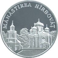 • în partea de sus, urmînd circumferinţa monedei - cu majuscule este gravată inscripţia "MĂNĂSTIREA HÎRBOVĂŢ".