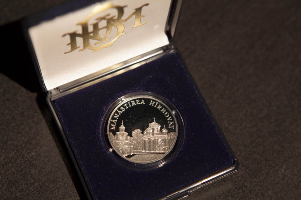 Monedă comemorativă din seria „Mănăstirile Moldovei”, în circulaţie din 25 decembrie 2000.