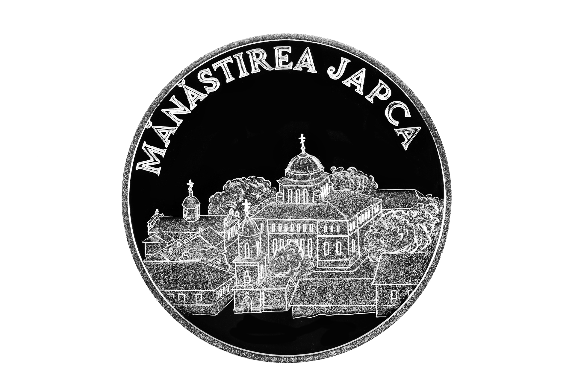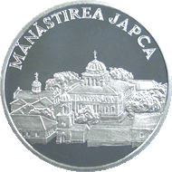 • în partea de sus,urmînd circumferinţa monedei - cu majuscule este gravată inscripţia "MĂNĂSTIREA JAPCA".