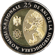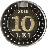 Aversul și reversul monedei sunt de culoare argintie-aurie: interior – aurie, exterior – argintie.
