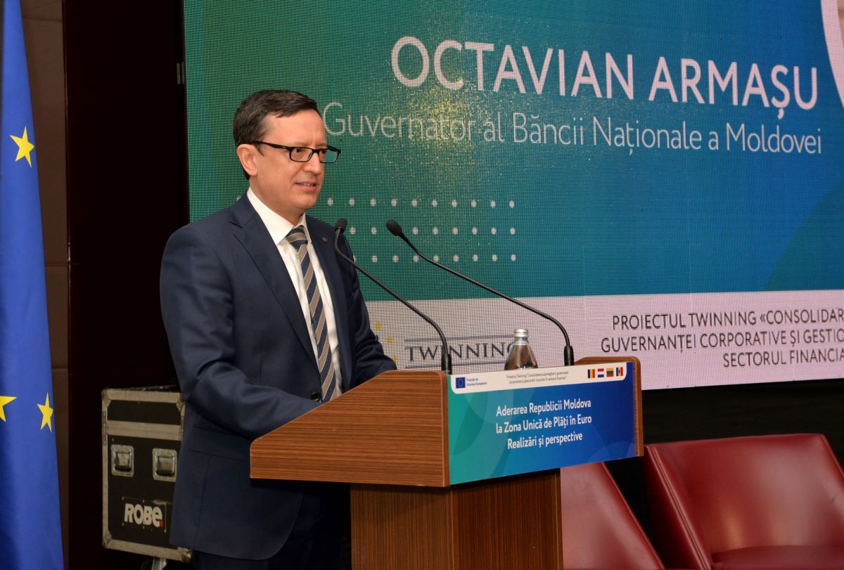 În deschiderea conferinței, guvernatorul BNM, Octavian Armașu, a subliniat că aderarea la Zona Unică de Plăți în Euro reprezintă un exercițiu de importanță națională, un proiect de țară, un pas esențial în contextul integrării Republicii Moldova la Uniunea Europeană.