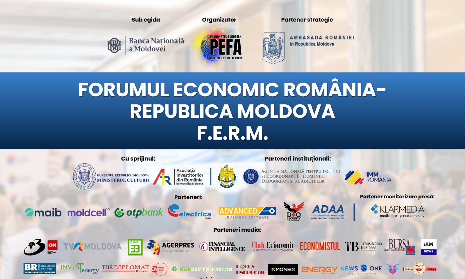 Forumul Economic România – Republica Moldova (F.E.R.M), organizat de Patronatul European al Femeilor de Afaceri PEFA, sub egida Băncii Naționale a Moldovei, în parteneriat strategic cu Ambasada României în Republica Moldova.