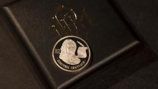 Monedă comemorativă „Constantin Brâncuşi - 125 de ani de la naştere”, în circulaţie din 5 noiembrie 2001.