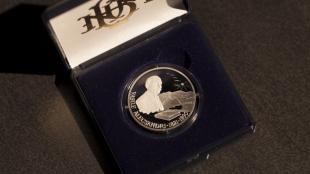 Monedă comemorativă „Vasile Alecsandri -180 de ani de la naştere”, în circulaţie din 5 noiembrie 2001.