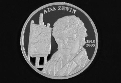 în partea de sus, în exergă este gravată cu majuscule inscripția „ADA ZEVIN”.