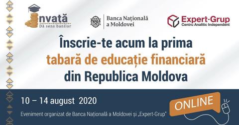 Dacă sunteți elevi, studenți sau tineri dornici să aflați mai multe despre domeniul financiar-bancar, proiectul de educație financiară „Dă sens banilor” vă oferă o oportunitate unică de a participa la prima tabără de educație financiară din Republica Moldova, organizată de Banca Națională a Moldovei (BNM) și Centrul Analitic Independent „Expert-Grup”.