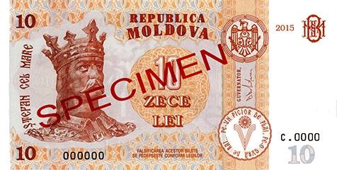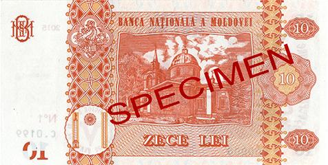 Bancnota modernizată cu valoarea nominală de 10 LEI, specimenul anului 2015, are dimensiunile și designul identice bancnotei cu valoarea nominală de 10 LEI, specimenul anului 2013.