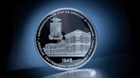 Moneda dedicată împlinirii a 80 de ani de la înființarea Universității de Stat de Medicină și Farmacie „Nicolae Testemițanu” din Republica Moldova este un omagiu adus unicei instituții publice de învățământ superior din Republica Moldova specializată în formarea medicilor și farmaciștilor, în conformitate cu cele mai înalte standarde europene. Universitatea poartă numele distinsului savant Nicolae Testemițanu, în semn de recunoaștere a contribuției sale remarcabile la dezvoltarea medicinei. Pentru merite deosebite în domeniul educației și sănătății, instituția a fost decorată în 2005 cu Ordinul „Gloria Muncii”, iar în 2015 - cu „Ordinul Republicii”.