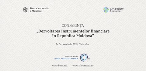 Banca Națională a Moldovei (BNM) organizează pe 24 septembrie 2019, în parteneriat cu CFA Society Romania, conferința de nivel înalt: „Dezvoltarea instrumentelor financiare în Republica Moldova”.