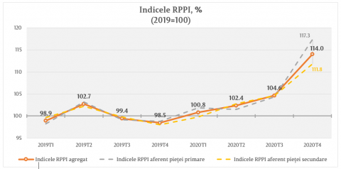 La finele trimestrului IV 2020, prețul de ofertă la bunurile imobile rezidențiale din mun. Chișinău a înregistrat o creștere de circa 14,0 la sută față de perioada de referință (anul 2019), fiind mai pronunțată comparativ cu trimestrul III 2020 și comparativ cu perioada similară a anului precedent.