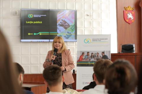 Lecția publică a avut loc în cadrul Campaniei Naționale de „Educație financiară pentru toți”, derulată de BNM în parteneriat cu Centrul Analitic Independent „Expert-Grup”, cu sprijinul proiectului USAID „Reforme Instituționale și Structurale în Moldova” (MISRA).