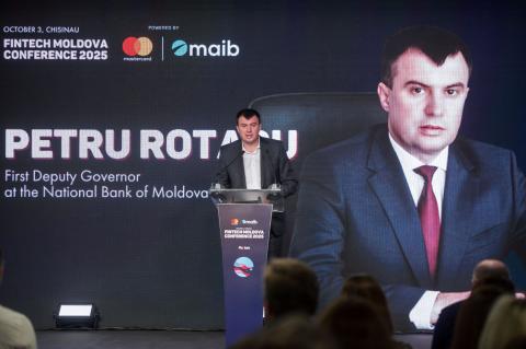 Prim-viceguvernatorul Băncii Naționale a Moldovei (BNM), domnul Petru Rotaru, a participat astăzi la Fintech Moldova Conference 2025, principalul eveniment dedicat inovațiilor financiare digitale din Republica Moldova, care reunește lideri ai sectorului financiar-bancar, reprezentanți ai industriei IT, autorități de reglementare, investitori și experți internaționali, pentru a dezbate tendințele și evoluțiile care definesc viitorul serviciilor financiare digitale în Moldova și în regiune.