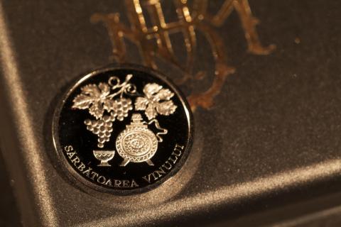 Monedă comemorativă „Sărbătoarea vinului”, în circulaţie din 10 octombrie 2003.