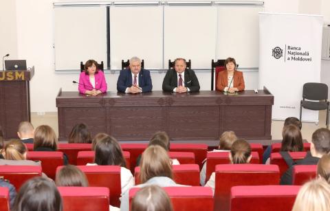 În cadrul aceleiași întâlniri, viceguvernatorul BNM i-a îndemnat pe studenții USM să-și dezvolte o carieră în cadrul băncii centrale, un apel salutat și de rectorul USM prezent la eveniment, Igor Șarov.