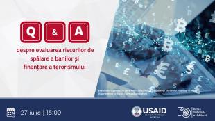 Marți, 27 iulie, începând cu ora 15:00, reprezentanții entităților raportoare, dar și alte persoane interesate pot participa la o sesiune online de întrebări și răspunsuri privind evaluarea riscurilor de spălare a banilor și finanțare a terorismului. Participarea la eveniment este deschisă tuturor persoanelor interesate care se vor înregistra până în data de 23 iulie 2021.