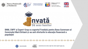 Banca Națională a Moldovei (BNM) anunță desfășurarea, în perioada 29-30 octombrie, a celei de-a doua ediții anuale a activităților de educație financiară inițiate în cadrul proiectului „Învață. Dă sens banilor”.