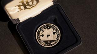 Monedă comemorativă „10 ani de la Proclamarea Independenţei Republicii Moldova”, în circulaţie din 28 august 2001.